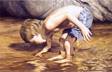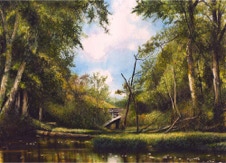 Each painting is meticulously reproduced and printed on 24LB, 13" x19" watercolor paper with a white boarder all around. Then the print is hand-signed by the artist, embossed stamped penetrating both sides and then an ink stamped is applied to the back as to add more validation and authenticity to each work. See diagrams below show examples of signing, embossing and stamping below.